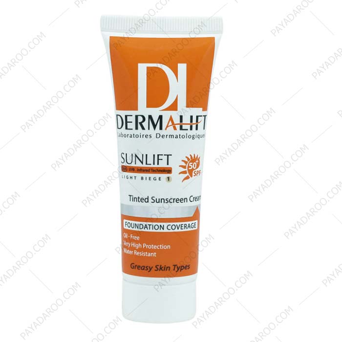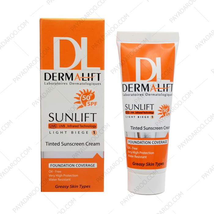 کرم ضد آفتاب SPF50 پوست چرب درمالیفت بژ روشن حداکثر حفاظت پوست در برابر اشعه آفتاب را دارا می باشد. این کرم با حفظ رطوبت لایه شاخی پوست و جلوگیری از خشکی آن مانع از پیری زودرس پوست صورت می شود. این محصول در انواع بی رنگ و رنگی (بژ روشن، بژ طبیعی، بژ تیره و کاراملی) موجود می باشد.