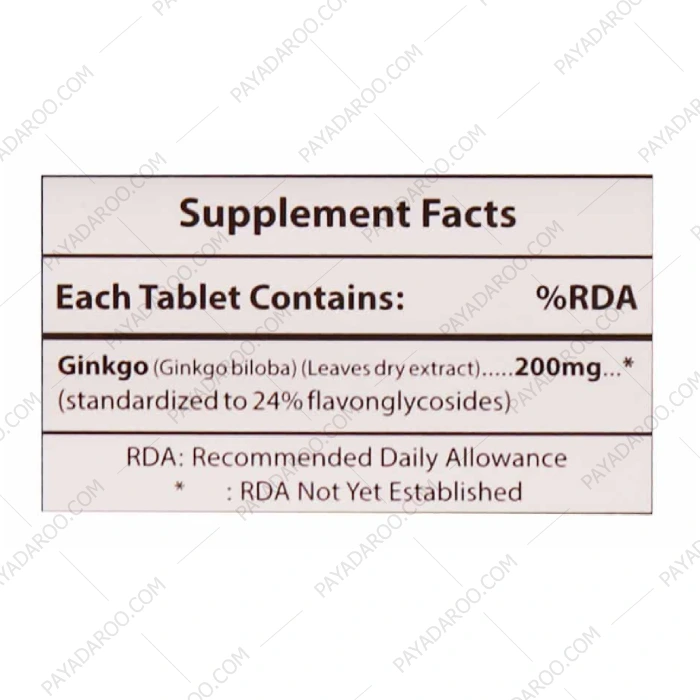 مواد موثره اصلی: عصاره خشک برگ گیاه جینکوبیلوبا 200 میلی گرم |